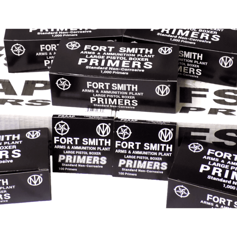 ‘Fort Smith’ (FSAAP) Large Pistol Boxer Primers are non-corrosive and meet CIP, SAAMI, and DoD quality standards as established by our federal clients. The nation’s top ammunition makers employ these brand-new primers from 2018 and 2019.