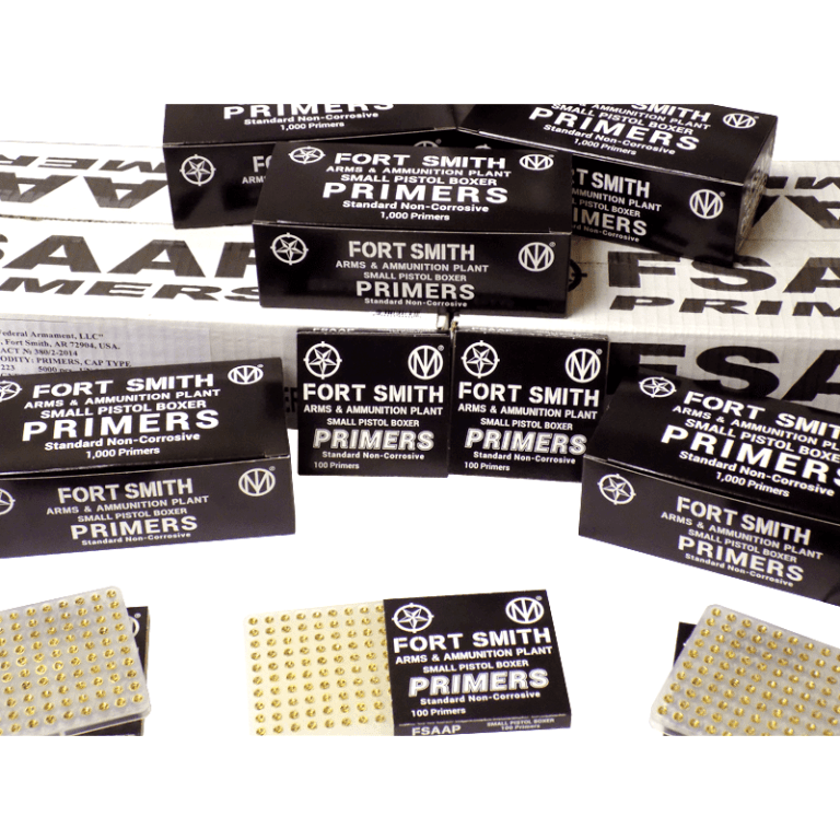 ‘Fort Smith’ (FSAAP) Small Pistol Boxer Primers are non-corrosive and meet CIP, SAAMI, and DoD quality standards as established by our federal clients. The nation’s top ammunition makers employ these brand-new primers from 2018 and 2019.