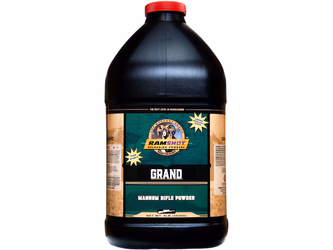 Ramshot Grand Magnum Rifle Powder is a temperature-stable, double-base spherical powder designed for magnum cartridges. It delivers precise metering, excellent accuracy, and consistent velocity with low extremes. Ideal for calibers from .243 Winchester to .338 Lapua Magnum, it’s perfect for high-intensity, long-range shooting. Made in the USA.